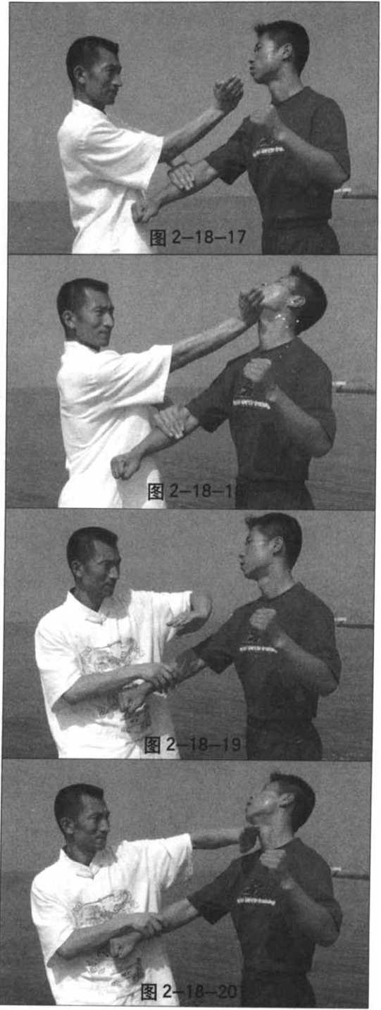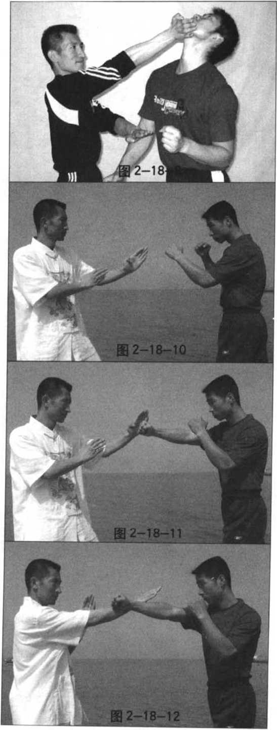我右掌准确的铲中了对 方的下巴(图2-18-8),