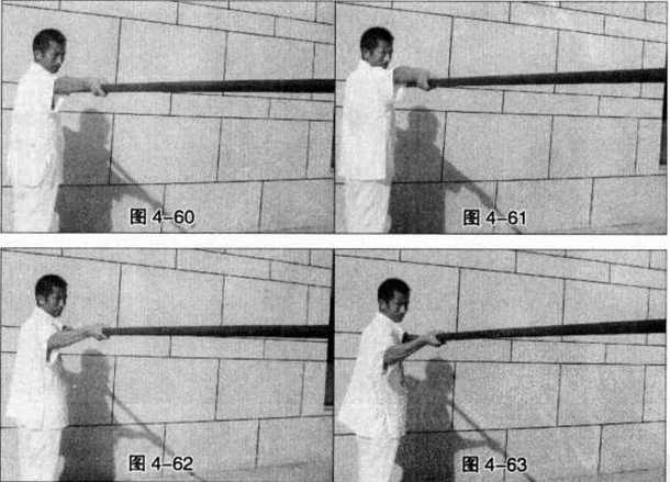 两手持棍向前方刺出时身体须保持平稳(图4-58)
