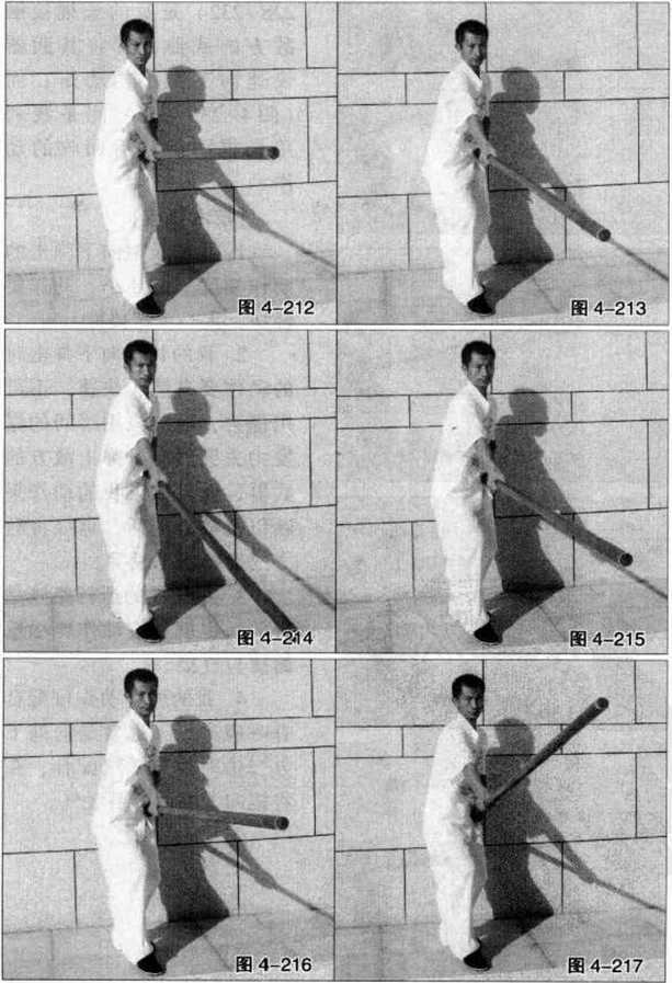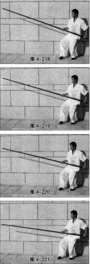 直至将长棍向上收起至眼睛或额部的高度为止(图4-217)以上过程为一个完整的动作。