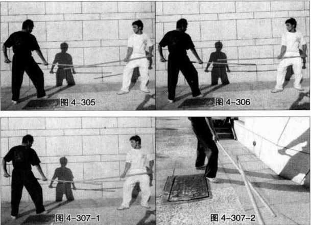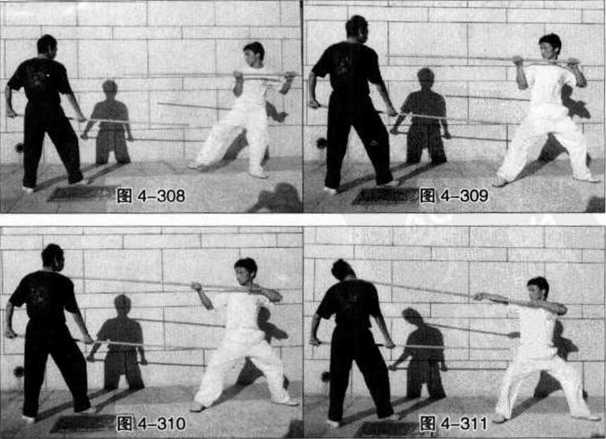 1 我的长棍向下弹击或反压敌方的武器时动作一定要快速力度要短脆。我持长棍向前方反击(直刺)敌方喉部时的动作要准确、直接、有力。