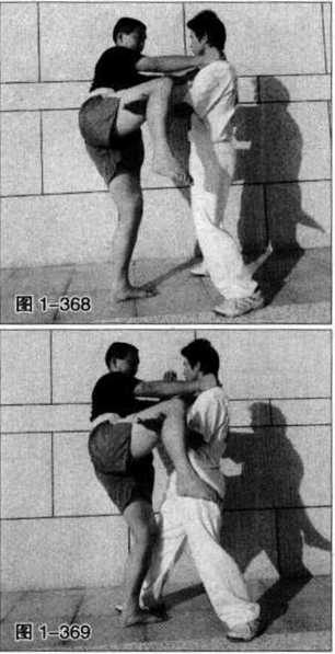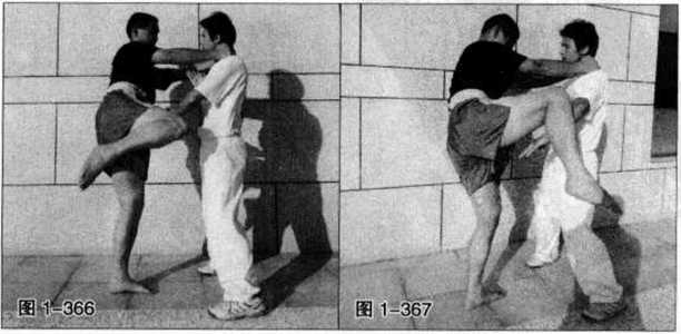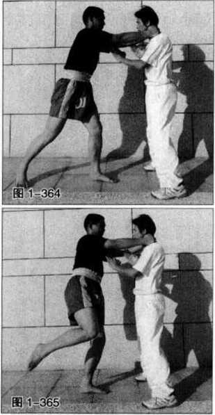 敌方抬右脚而开始用横撞膝攻来(图1-365)