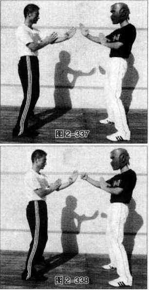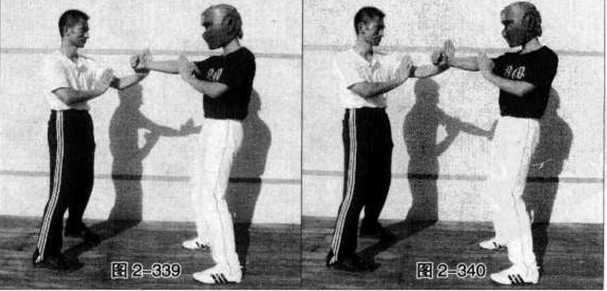 我在上下肢同时攻出时,须与呼气进行配合用来提升打击的力道(图2-330)