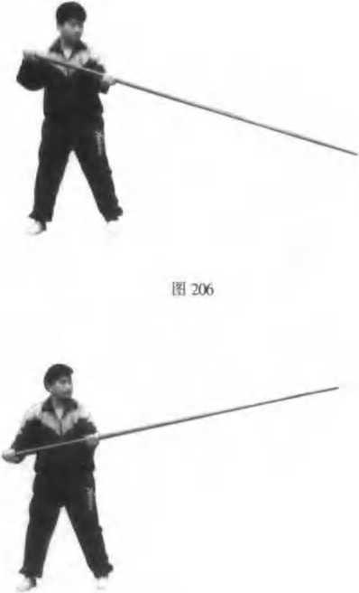 前,右手后拉,使棍梢高与罔齐平.锟梢|见图 208)