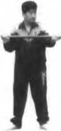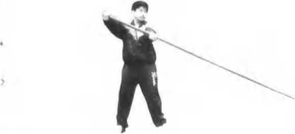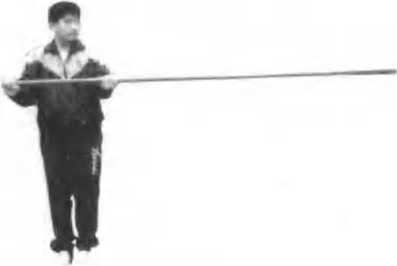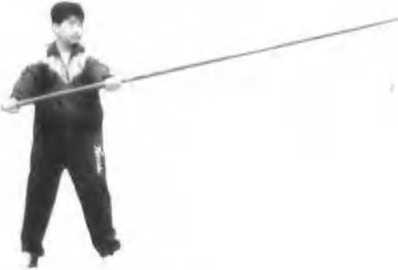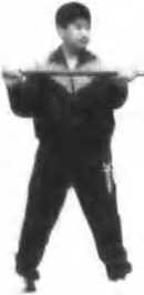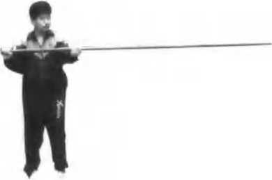 HI 242田243期.钳阳外收(第48势)依丨势(?.字钳阳马)脚尖稍抬起往内收.成“八”宁m 244田245形(见图246h49.拍脚钳阳(第49势)依t:势,两脚跟再向内移乍步成一卞钳阳马 < 见图ffl 24650.还棍还原(第50势)两手紧捤棍在归中位缓慢地自然垂下成开棍势后旳原势 (见图248)。