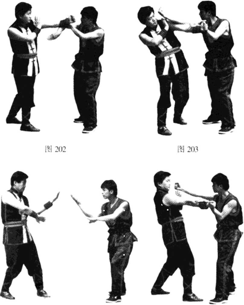 图204 图205【例4】膀手爆拳,转伏打。双方对峙准备格斗(见图?意为突然爆炸C