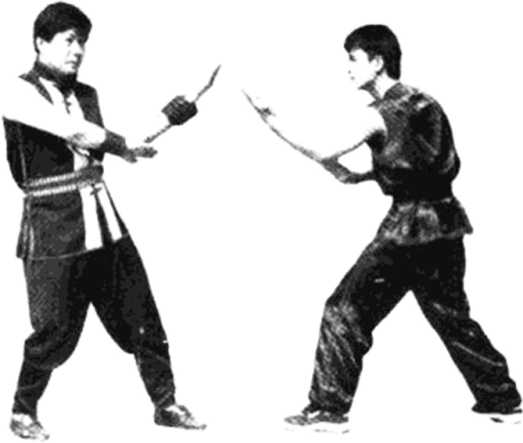 【例5】连消带打标指手。双方对峙准备格斗(见图