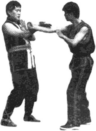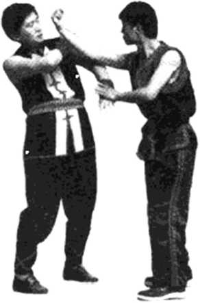 近身格斗对咏春拳手米讲,当然是 正中下怀,那是越近越易发挥,它 可以从长打到短,从拳打到肘,又 图312