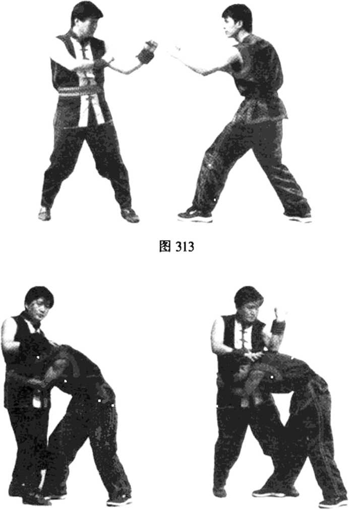 313) ;乙方突然逼步下蹲,意在将甲方拦腰抱起(见图