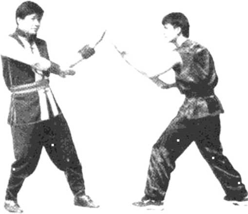 【例1】防抱腰左肘直下。双方对峙准备格斗(见图