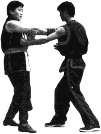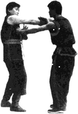 握运用,如果面对比自己身材高大和健壮的对手,还硬要去 抢内帘,就一定会吃亏。故此练习黏手就得学习抢内外帘的 技巧。