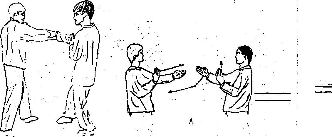 搭手动作乍一看似乎和搏拿手差不多其实木墟擒拿手重在擒与拿二其以控,制对方身体局部某一部位为目标且擒拿手法名目繁多,不一而足而搭手动作以整体控制对方重心为己任。一旦搭上对方矫手后即以腰马和步法的灵活变化或整体发放对方或以顺手奉羊的借力方式达到以弱胜强四两拔千斤的奇妙效果搭手分相对搭手和交错搭手两种形态现以交错搭手举例训练