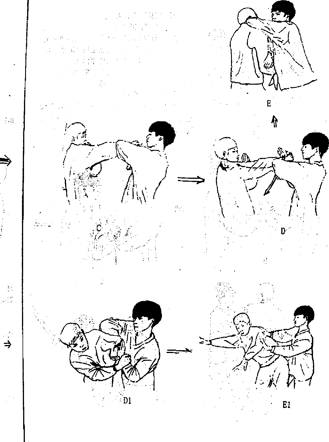 典让直线攻击落到对外便让弧线攻击落到肘内州二的原理起右肘迎接乙彘肘并上步反盖压乙致使乙上身后倒同时甲以推手顺势发放乙(图。卜