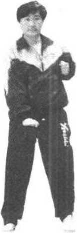 依上势,化日字拳为 掌,用掌根、掌心、劳宫 顺序往下捺(指不过中 线),再用掌根、掌背、 虎口顺序往右跨移成半阴 阳掌,不过膝(见图 224、图 225 )o