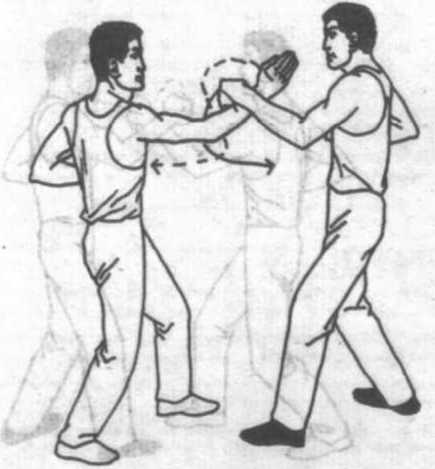 304乙左臂内旋用插捶向甲方的中路打出甲右下二桐臂内旋转膀手消解