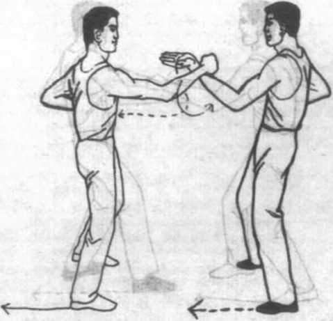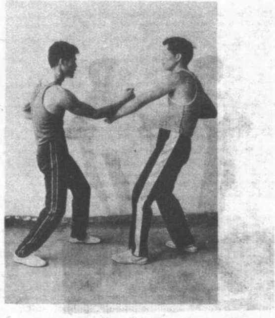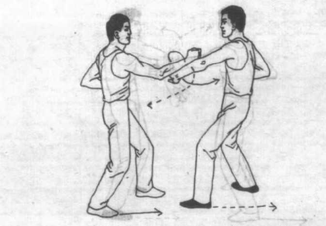 右腕背向乙方左胸直拳打出乙左脚后退一步同时左腕内臂外旋用摊手消解308乙左脚进一步同时左腕内用内横掌向甲方的胸部打出甲右脚退一步,同时右下二桐向下沉(至中路)消 3 一 ?- 7小、二