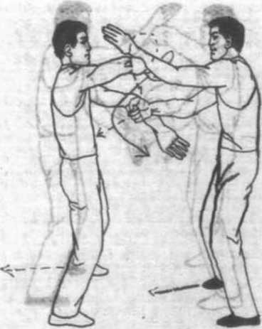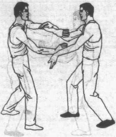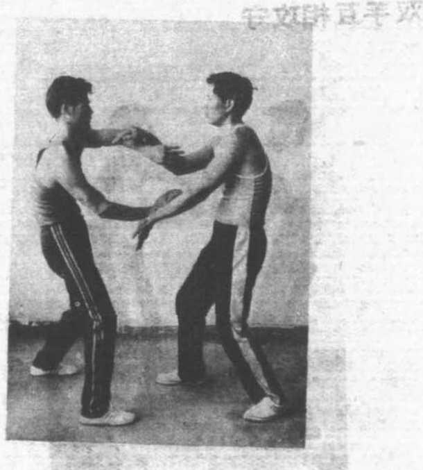 ,320乙右脚上前一步,左腕内臂外旋由上而下用底掌向甲方的腹部打出甲左脚向后退一步右腕臂外旋作伏手消解注315-320动作可作单个练习每个动作做完后可绻续宣复练习熟习后可转入双人双手独手互相攻防练习