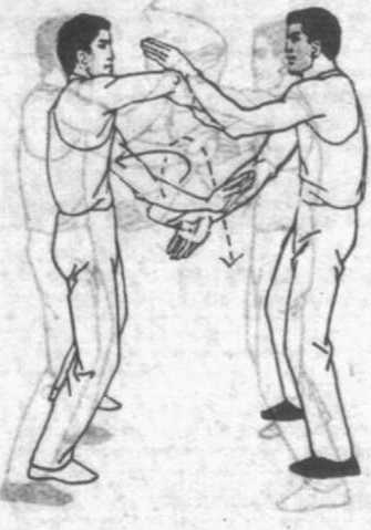 213325乙右腕内臂内旋,用外横掌由下而上沉住向甲方中路进攻甲左下二桐臂内旋用膀手消解二