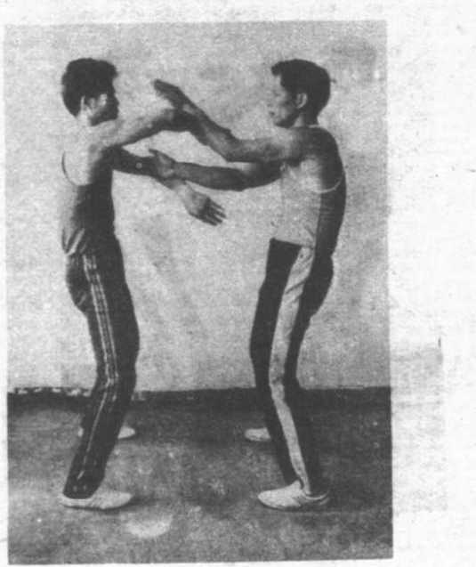 内帘及手去及甲方右膀手右脚后退一步,随即用左外横掌向甲方颈部进攻甲右脚上前一步同时用左下二桐向下一加以解脱乙方的左旗手成伏手腐即甲右臂内旋用右下二相转高膀手消解 芸、卬————思一1 331乙右脚进一步左臂内旋左腕内由下而上用外横掌沉住向甲方中路进攻甲右脚后退一步左臂内旋转膀手净乐3?美博消解