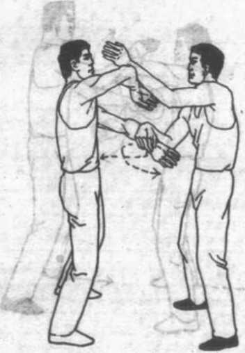 右外横掌以右腕为力点由上而下去勾住甲方的左右两手腕随即左腕臂外加、由下而上用外横掌向甲的胸部进攻甲左下二桐用膀手向前去消解乙的右勾手即以右前肘由下而上转高膀手去消解乙的外横掌335乙右下二桐沉肘用横掌佯手向甲胸部打出甲左下二桐膏内旋向上转膀羊消解乐牙全,--串,不产、,二一七可5中出广旗甲到灯飞%二224