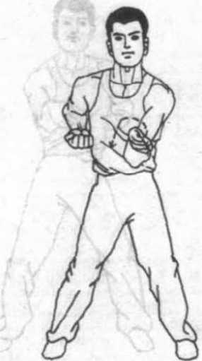 落牌左拳变掌以腕内侧为力点由心窝处向前上方捶出腕外侧正对心窝高出左臂内关节约6厘米归肘肘离身约18厘米109臂内旋,以腕内侧为力点向下伏高与脐平掌指向上归肘注上摊下伏的手法连做三次110左掌向上摊 -110左掌向上摊 -111手腕内屈由内下向前上划孤一周成横掌(归肘)以腕内侧为力点向前打出腕内侧与心窝同高110左掌向上摊 -110左掌向上摊 -