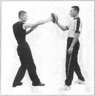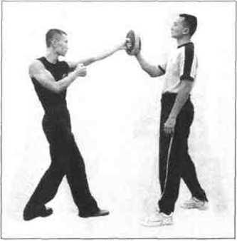其次虽然是击打靶物的练习但你仍须注意两拳在