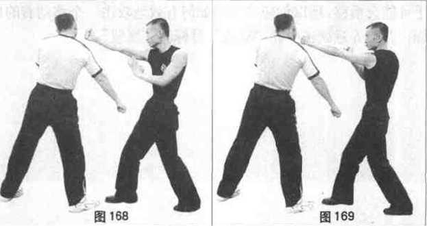 力极强的左直拳连击(图169)最后是右手重拳快速轰击(图170),予敌以致命性创击。