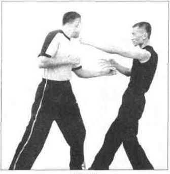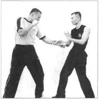 首先,你在用伏手搭敌方手腕时定要防止对手的1字冲拳顺势攻入同样的道理当对手欲运用这一技术时你也可以运用冲拳去顺势攻击他。在出拳打击敌方上盘要害的同时你千万不要忘记下肢的有效配合,你可以迅速将脚插入敌方中门,如果真能插入势必会控制住其重心。如果对方反应敏捷而避过了你下盘的冲击时也必会因身体后撤的过猛而严重影响其重心平衡这个时候如果你能把握住良好的战机必可一拳击倒对手。这样说来,欲有效击倒对手不仅战术要灵活,而且还要有良好的步法配合同时打击的时机也极为重要正如李小龙当年对弟子们所讲速度与对时机的良好把握是相辅相成的在出招时倘时间把握不准则攻击定会大失效果。