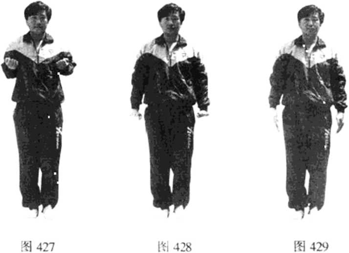 依上势,双掌手指自然下垂,归原位(见图429)o后 记寻桥、标指是咏春拳的中高级套路,在练习时一定要按 部就班地练,一丝不苟地按照要领全套招式地去练,要求习 者要认真地领会每一个动作,熟练地掌握好“大闪侧,小俯 仰,小闪侧,大俯仰”及三扣肘等身形和步法,这样,就可 为日后过渡到学习木人桩法及器械打下坚实的基础。