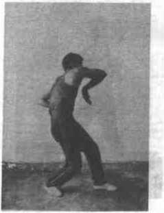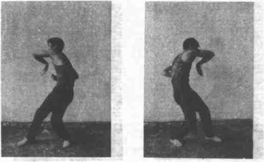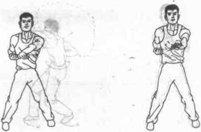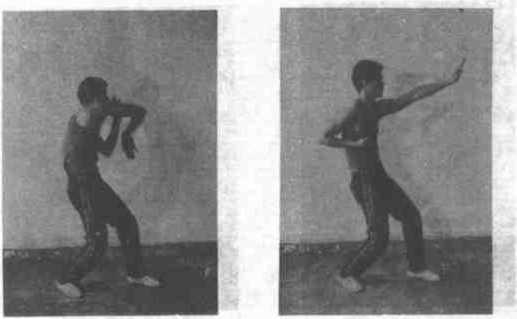 144左臂臼肘,左拳收至左典制上体向左后转1800成二字钳单马同时右臂勺屈,以肩为触以前肘为力点由后绶上绕过关部向鼻尖前打出右笥肘正对下事,右猊假力学屈拿指伸直中指正对防方