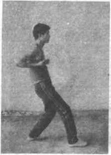 40左脚上步成二字例单马,依右卿再向前峨步如是左右脚交8边马-