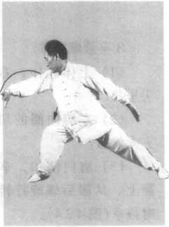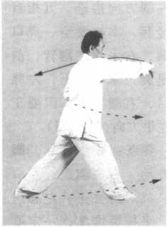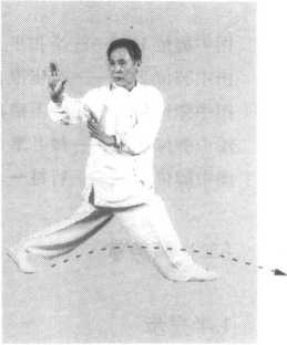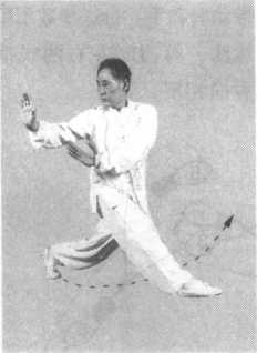 (3)翻手画弧揭掌时,以腰画圈带动肩和手。行进步数不限。