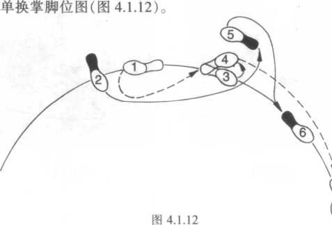 图中脚位1、2——半扣步