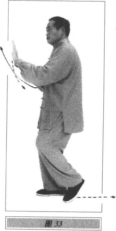 与左势同,唯手、脚的动作和运动的方向相反(图32、33)。