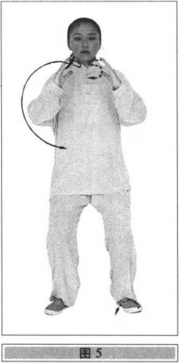 两手臂向左右分开至肩前,两手相距与肩同宽(为开 手);接着转向内合,合至两手相距与脸同宽(为合手),开合 不要扇动腕关节;眼平视前方(图4、5)。※动作熟练后,随着两手的开合,重心要在两腿上虚实 轮换,两膝要微开微合,两肩胛要带动胸腔扩张与收缩;做 开的动作时,两手间意如“气球”之气向外膨胀,合时,意如 挤压“气球”。个人演练“开合手”可重复做。96