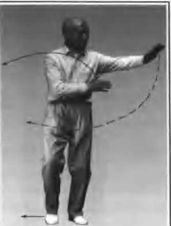 (偏右)退一步,脚尖右转,身体随 同退步右转(南),重心右移;右手屈臂向右(西)云 转,手心经面前时向内,随后转向外,手指向上;左 手经腹前云转至右胸前,手心向内;左脚收于右脚 内侧.相距约10厘米,脚尖点地;眼看右掌H68H68H68H68