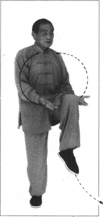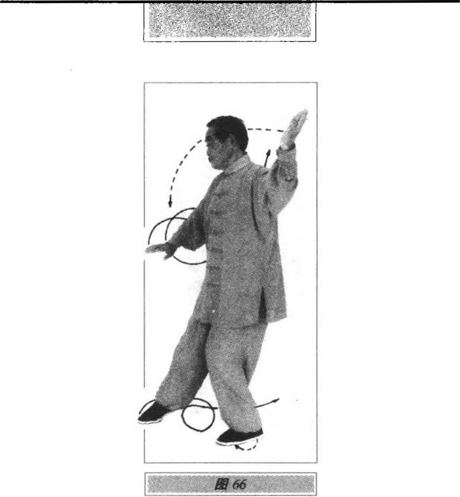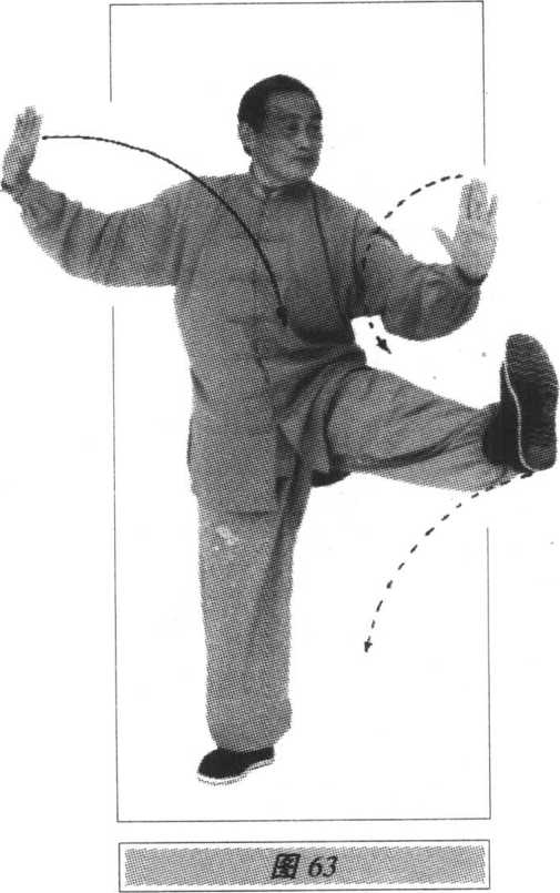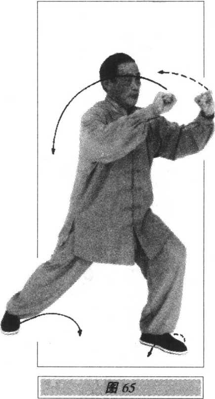 重心后移至左腿,右脚撤回原地,重心再移至右腿,即可做左 蹬脚、双峰贯耳。其他动作与技术要求参照右式(图62、63、64、 65) o