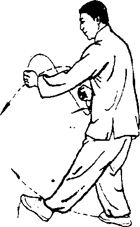 截右臂,左横扫在同一时间。成一合力完成动作,随之两 手用力向右方推出。