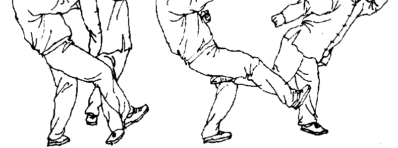 (2) 后撩腿时,起腿路线成斜线,膝关节较一般后撩腿弯 曲幅度大。力达脚掌和脚跟。