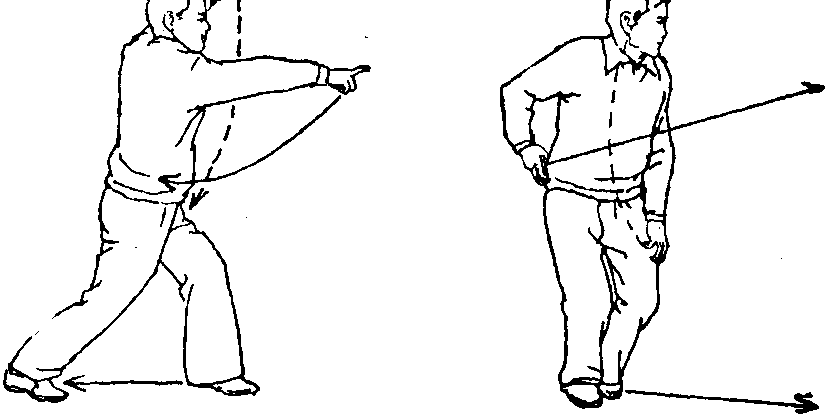 1 .上体左转后仰,右臂外旋使手心向前,右手经右腰际向 前上方推出,左手翻腕置于腹前,手心亦向前。眼看右手。 (图 46)