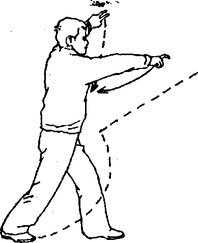 5,上动不停。左脚前上一步,同时,左手经右侧向左上 方划弧,右手向前平伸。(图50)