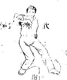 1.)右牌.稍提起下落,脚尖 内扣,'身体:每转8°,左脚随之提