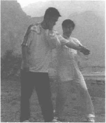 2. 捋腕转身。我的右手从对方腋下 穿上,右肩贴近于他的左腋窝下