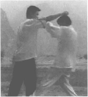 图310右手缠穿图310右手缠穿3.缠穿上环。对准对方腋下空隙 处,反掌穿进,同时滚转,偏沉 上提其臂(图311) o3.缠穿上环。对准对方腋下空隙 处,反掌穿进,同时滚转,偏沉 上提其臂(图311) o图311缠穿上环图311缠穿上环