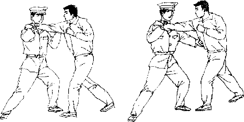 【动作要领】挡抓下拉要及时有力,掌击要气贯右掌劳 宫穴。