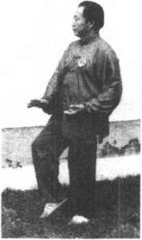 重心移至右腿,左 脚收至右脚内侧;两手 向右下捋,右掌捋至右 胯外侧,左掌捋至腹前; 目视左前方。(图2- 110)
