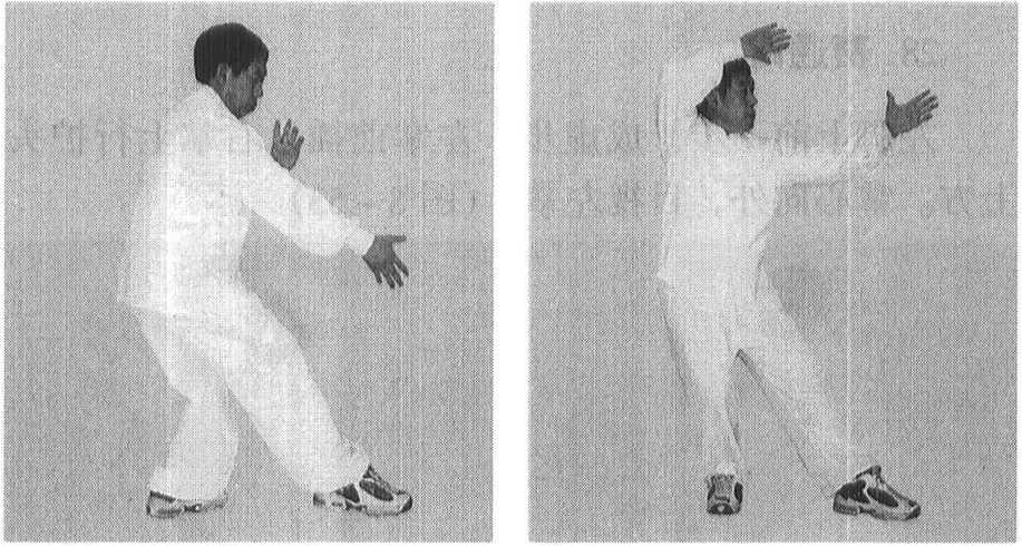 转动。云手连作两式或三式重复动作。