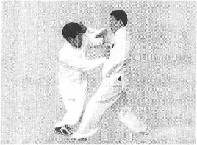 敌以拳击我胸面,我双手以十字交叉接住来拳,我 双手心向内,化解后马上左手掳住敌拳,同时右掌打敌 头胸。或右手掳敌,左手打敌头胸。或双手反扑,以双 推掌扑打敌胸,敌自摔倒。(图9-19、20)要点:掳打同时,先化后打。灵活多变。十字一 势可多用,此技变化手无穷。10 .腋下掌此势用法是,敌来拳时,我以左臂上棚住敌拳,同 时右从左臂下向敌胸肋攻击。(图9-21)图 9 -20
