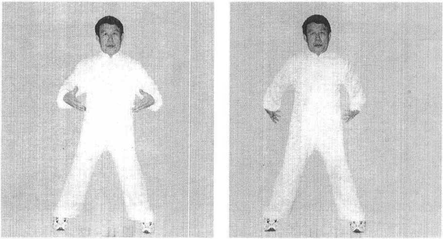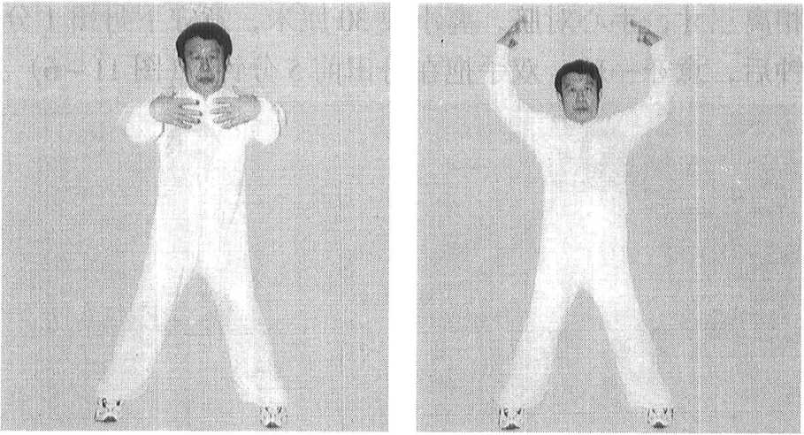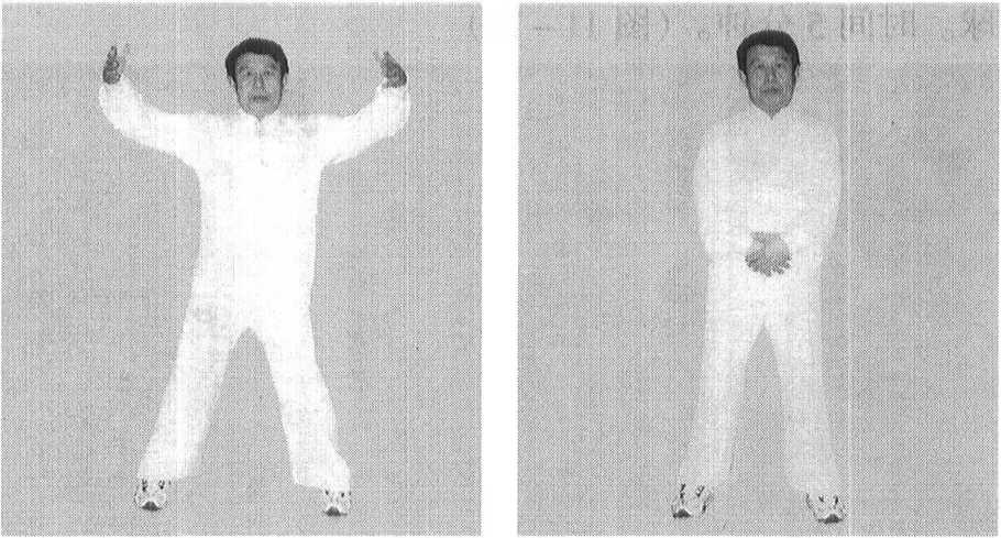 双手由身后两侧向前上方搂出,意想天地灵气,真 气,阳气进入下丹田,大约3分钟。