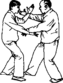 二人前后小开步站立,正面相对。两臂前伸,两肘半屈,使小臂斜立。