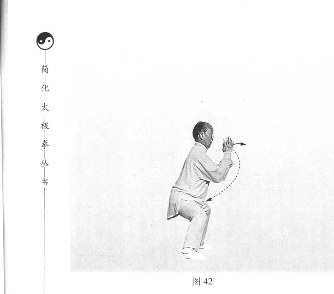 动作六:身体重心稍右移成马步。同时,双手手心向 上划弧合于脸前,指尖与眉齐,两掌相距一寸左 右。眼向东平视(图42)。赵堡图43 附图43赵堡图43 附图43动作七:赵堡图43 附图43赵堡图43 附图43身体重心左移,成左弓右蹬步。同时,左掌 变勾手,由胸前向下、向左划弧落到左胯旁,勾 尖朝外;右掌向前推出,高与鼻平,手心向东 北。眼顾及右掌(图43、附图43)。